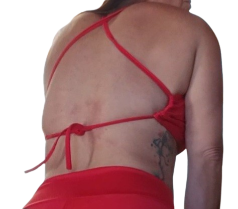 Top de atar regulable, puede ir desde un talle 85 al 100